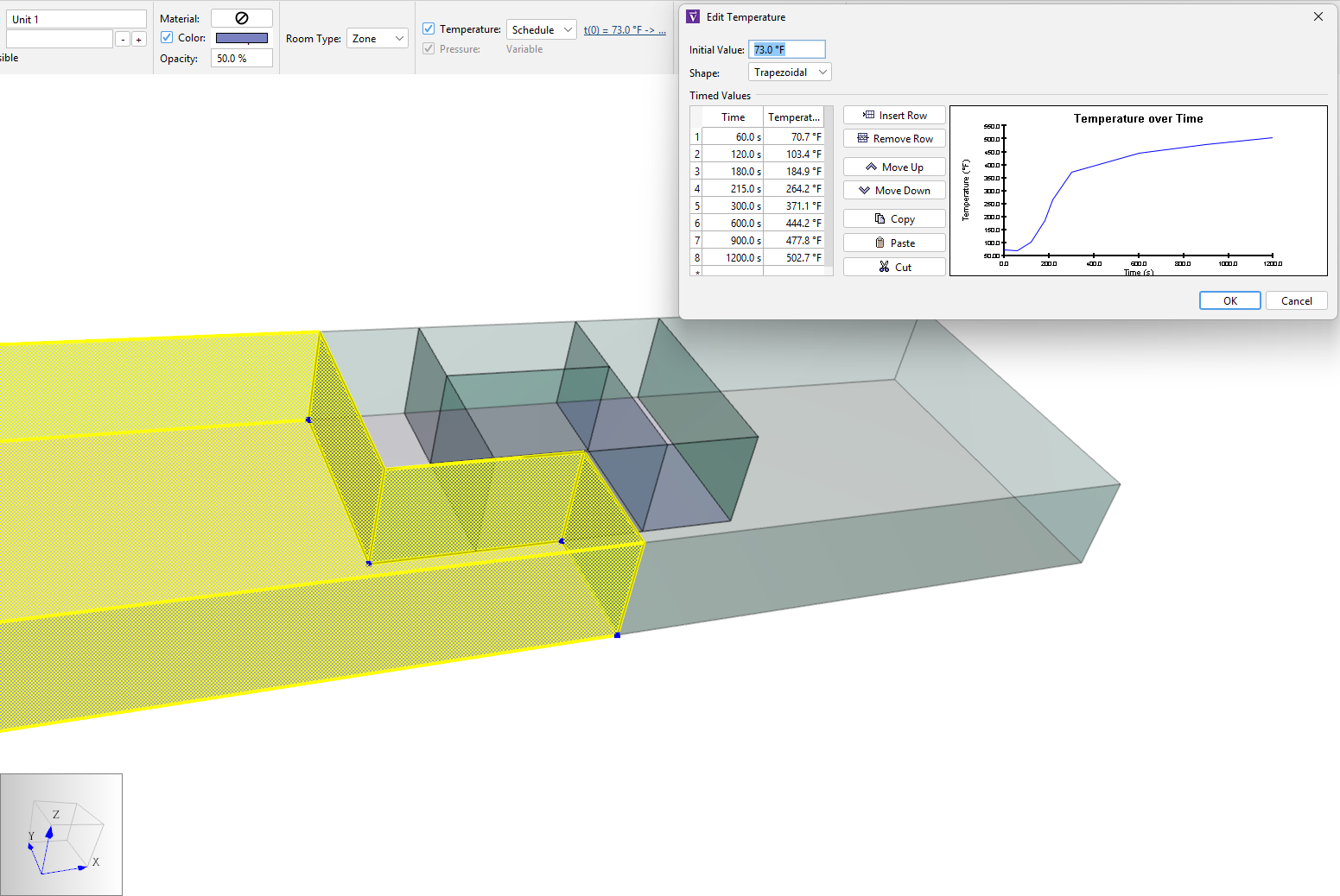 Next, use temperature data in Table 1 to schedule Zone temperatures and the fuel rate data in Table 2 to schedule Species generation.