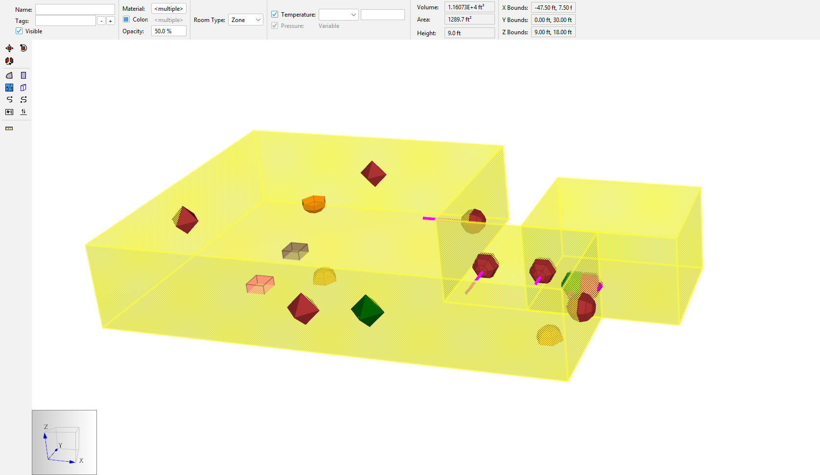 - Press ENTER. As mentioned in the User Manual, the Rel. Height value is clamped to the middle 98 % of the walls on which the endpoints are attached. In this case, the value becomes 0.09 ft (0.03 m). This is OK for our low-fidelity simulation.