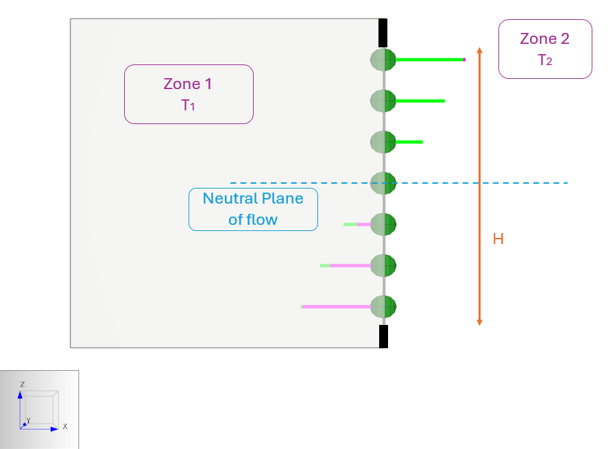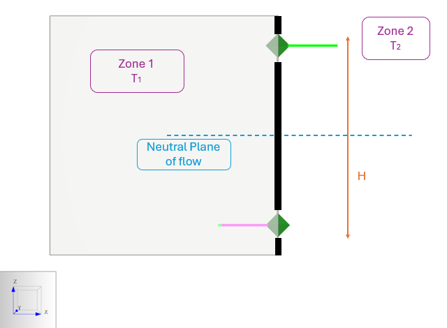 In Ventus, users can approximate the bidirectional flow with two openings offset from the neutral plane of the opening with the Two-way - Two Opening Flow Element as in Figure 3.