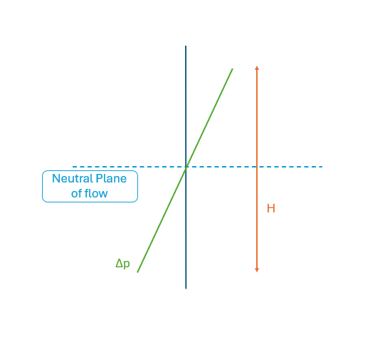 Flow characteristics will depend on the neutral plane height; two-way flow is only possible when the neutral plane of flow is within the height of the opening. To consider these conditions and assess flow characteristics, isolate the flow as done in the CONTAM Technical Reference. The hydrostatic equation is used to calculate pressure differentials resulting from the temperature difference. (Walton 1989).
