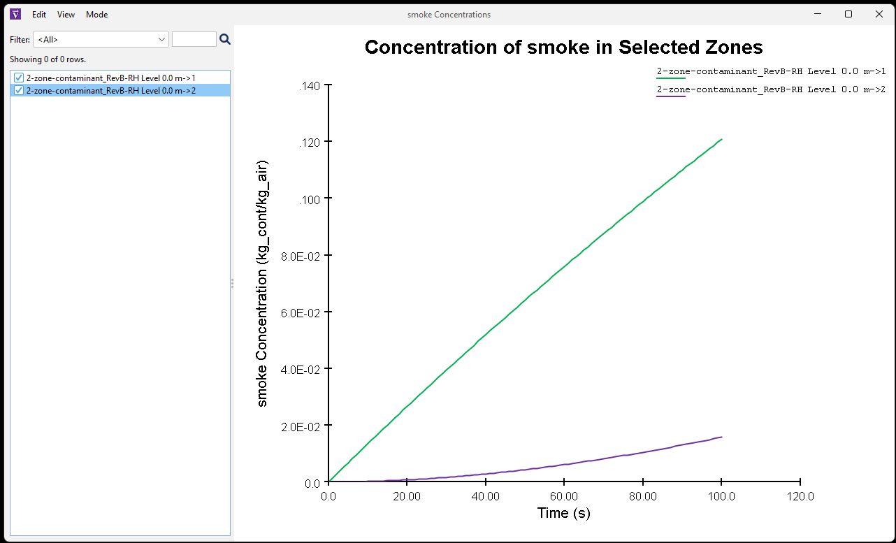 Because the one-way flow path provides the only connection between Zones (and there is zero external pressure), there is no pressure differential and therefore zero flow. This is the net flow through the window – but it doesn’t account for air leaving Zone 1 and returning from Zone 2 across the vertical height of the opening. To track contaminant transport, bidirectional flow should be quantified.