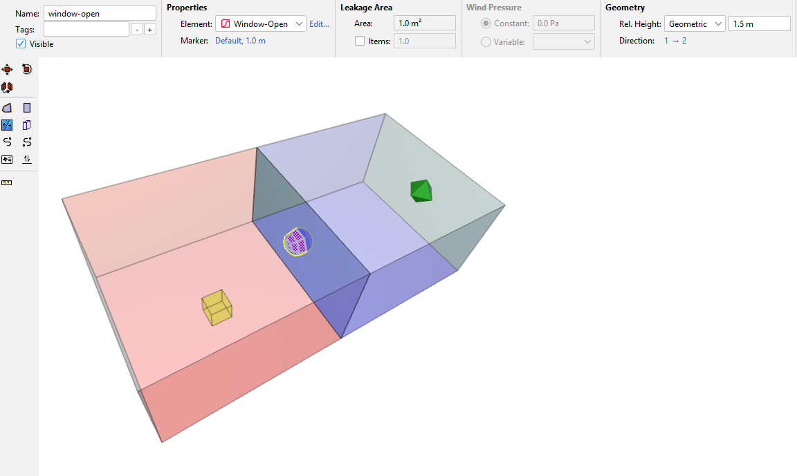Model a mid-height window between Zones in Ventus. This provides the starting point for comparing one-way and two-way flow models in Ventus.