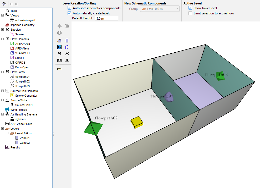 Create a simple two-Zone model to calculate two-way flow and understand the significance of the Flow Element models. Work through an example, drawing from the guidance found in the ASHRAE Handbook of Smoke Control, the REHVA Smoke Management Guidelines, and CONTAM documentation.